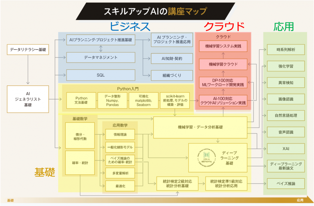JDLA(Japan Deep Learning Association)は、東京大学の松尾豊教授らが中心となって設立された団体であり、日本の産業競争力を高めるためにディープラーニング技術の実装能力を持つ人材を育成することをミッションとしている。その資格体系は、明確に「ビジネス活用(ジェネラリスト)」と「エンジニアリング実装(エンジニア)」の二軸に分化しており、近年ではこれに「生成AI」という新たな軸が加わっている。